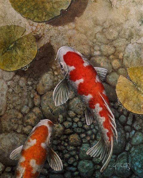 What began as a short "koi" series, inspired while researching a mural project, Terry found the beautiful and captivating Koi, and the world they live in, to be not only a compelling and visually appealing subject, but also a very infectious subject to paint.