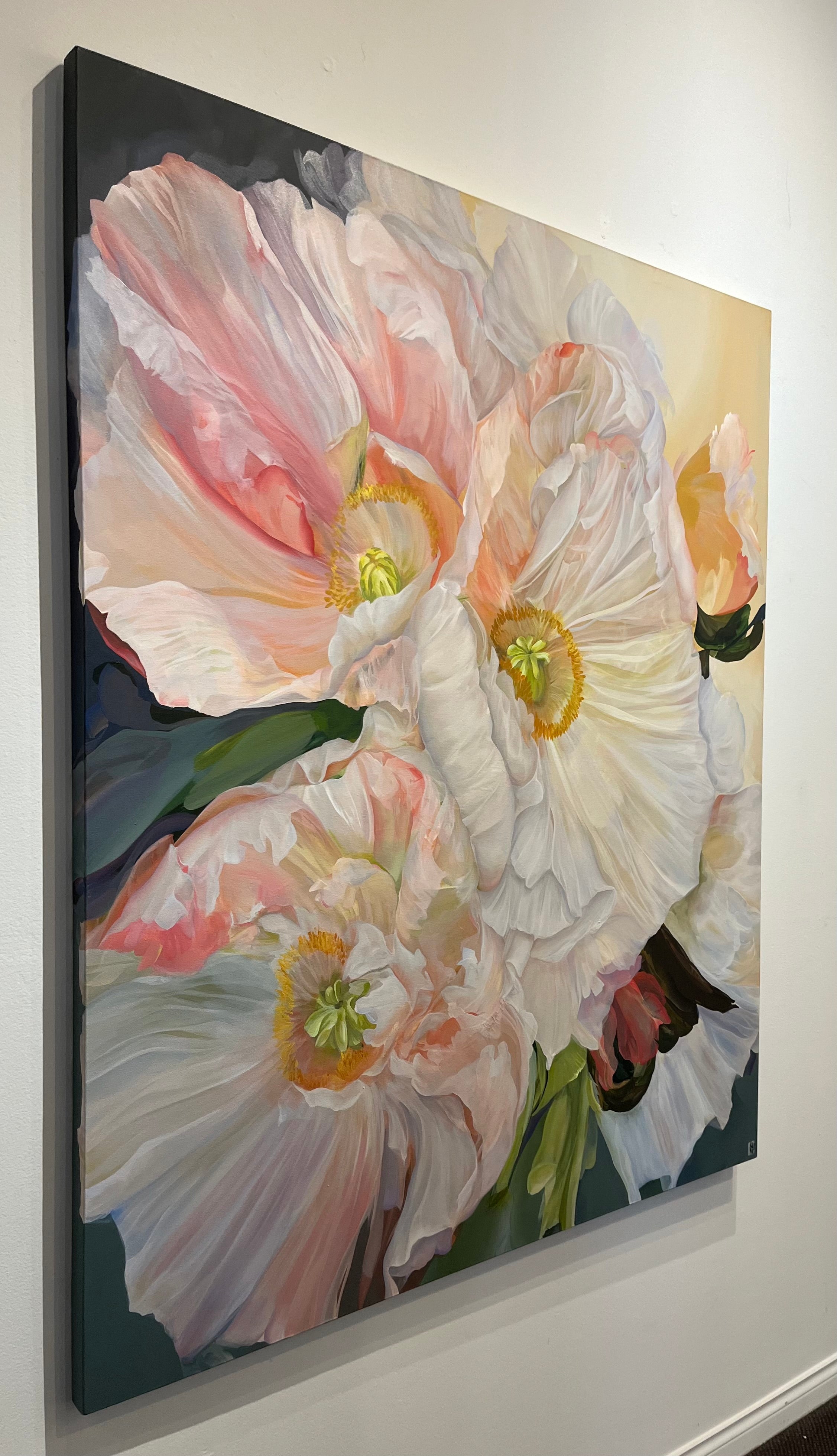 Each piece begins with the familiar beauty of flowers and botanical forms, then evolves into something more abstract and emotive. Belz’s floral paintings are rich with depth, petals dissolve into expressive brushwork, while color palettes evoke mood, season, and atmosphere. The result is artwork that feels both organic and elevated.