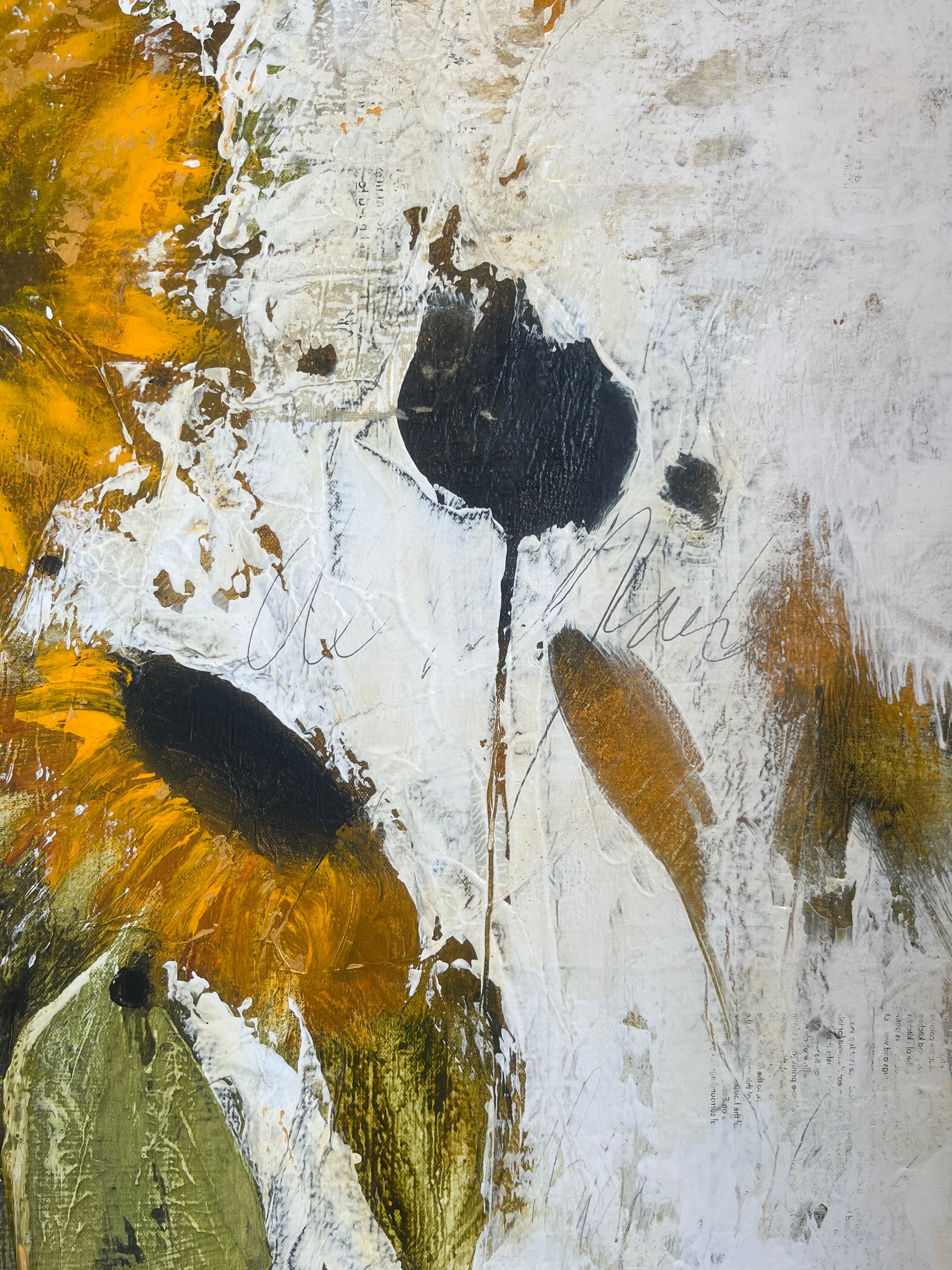 Harris approaches each piece intuitively, allowing the surface to evolve through bold brushwork, sweeping movement, and deeply tactile layers of paint. The result is work that feels both spontaneous and intentional, florals that are felt as much as they are seen.