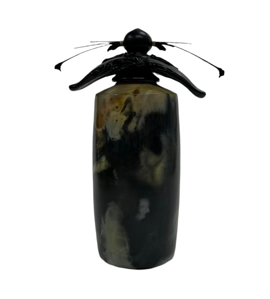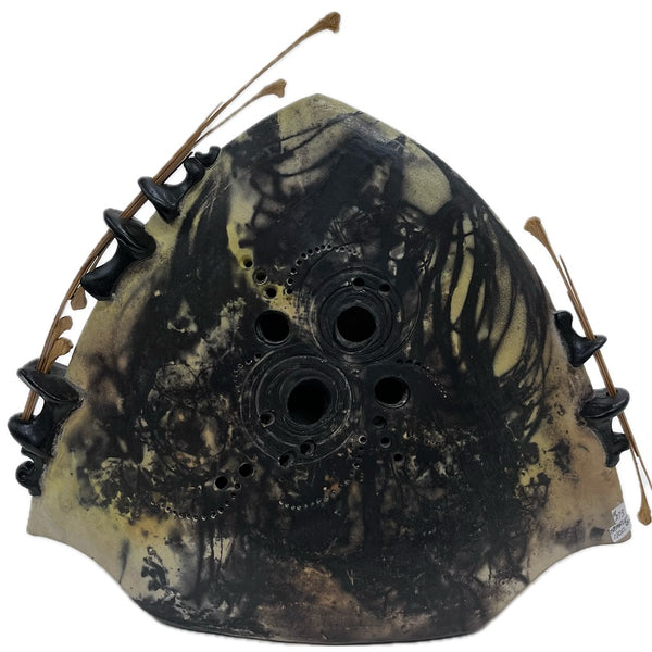 The lustrous satin finish, rich tones of nature and exquisite symmetrical precision of his pieces are standouts in the world of handcrafted artistry. Geoff achieves a full range of colorful hues in pit-fired burnished vases by fuming metallic salts and organic materials. His delicate handcrafted lids incorporate carved bamboo to reflect an exotic Oriental influence. Each finished piece is a one-of-a-kind object of art.